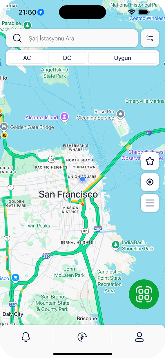 Elektrikli aracınızı güvenle ve hızla şarj edebileceğiniz istasyonlarımız ile her zaman yanınızdayız! Haritamız üzerinden AC ve DC şarj istasyonlarını kolayca bulabilir, aracınızın ihtiyaçlarına uygun noktayı seçebilirsiniz.