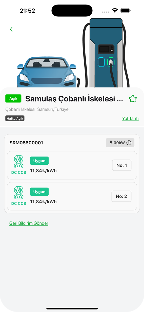 İhtiyaçlarınıza uygun şarj istasyonlarını keşfetmek ve rotanızı planlamak için haritamıza göz atın. Seyahatlerinizi kesintisiz sürdürebileceğiniz bu güvenli enerji noktaları sayesinde geleceğe bir adım daha yaklaşın!